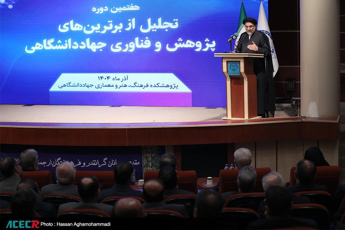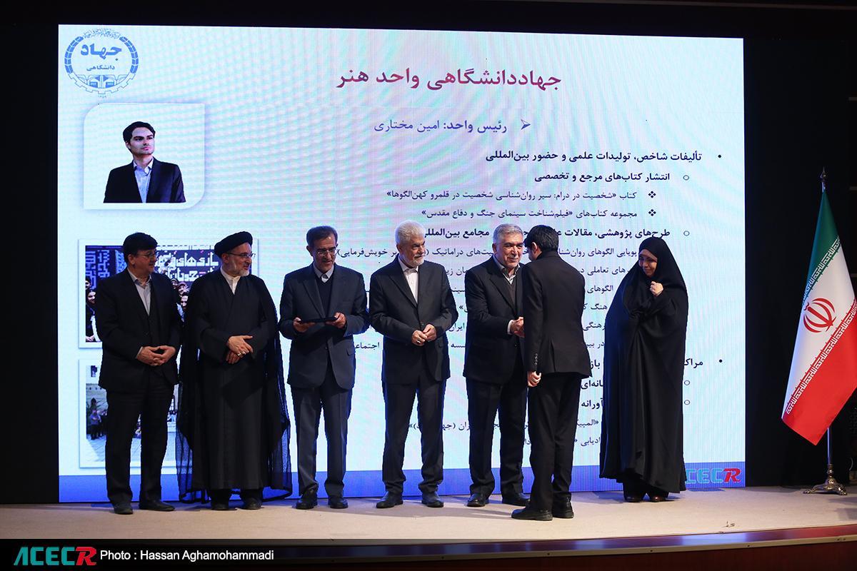 صبح یکشنبه ۳۰ آذر ماه آیین هفتمین دوره تجلیل از برترین‌های پژوهش و فناوری جهاددانشگاهی با حضور دکتر علی منتظری، رئیس جهاددانشگاهی و حجت الاسلام والمسلمین مهدی خاموشی، رئیس سازمان اوقاف و امور خیریه در پژوهشکده فرهنگ، هنر و معماری این نهاد برگزار شد.