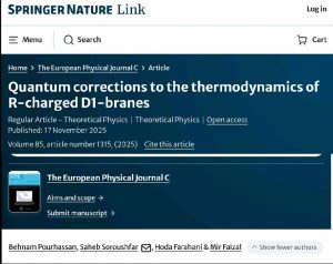 به گزارش روابط عمومی جهاددانشگاهی کهگیلویه و بویراحمد، در پژوهشی پیشگامانه تیمی از فیزیکدانان نظری از جمله دکتر بهنام پورحسن، دکتر صاحب سروشفر، دکتر هدی فراهانی از ایران و دکتر میر فیضل از کانادا به بررسی رفتار ترمودینامیکی غشاءهای باردار در چارچوب نظریه ریسمان پرداختهاند.