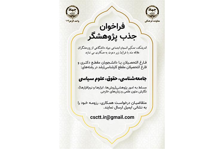 فراخوان جذب پژوهشگر در اندیشکده تحکیم انسجام اجتماعی