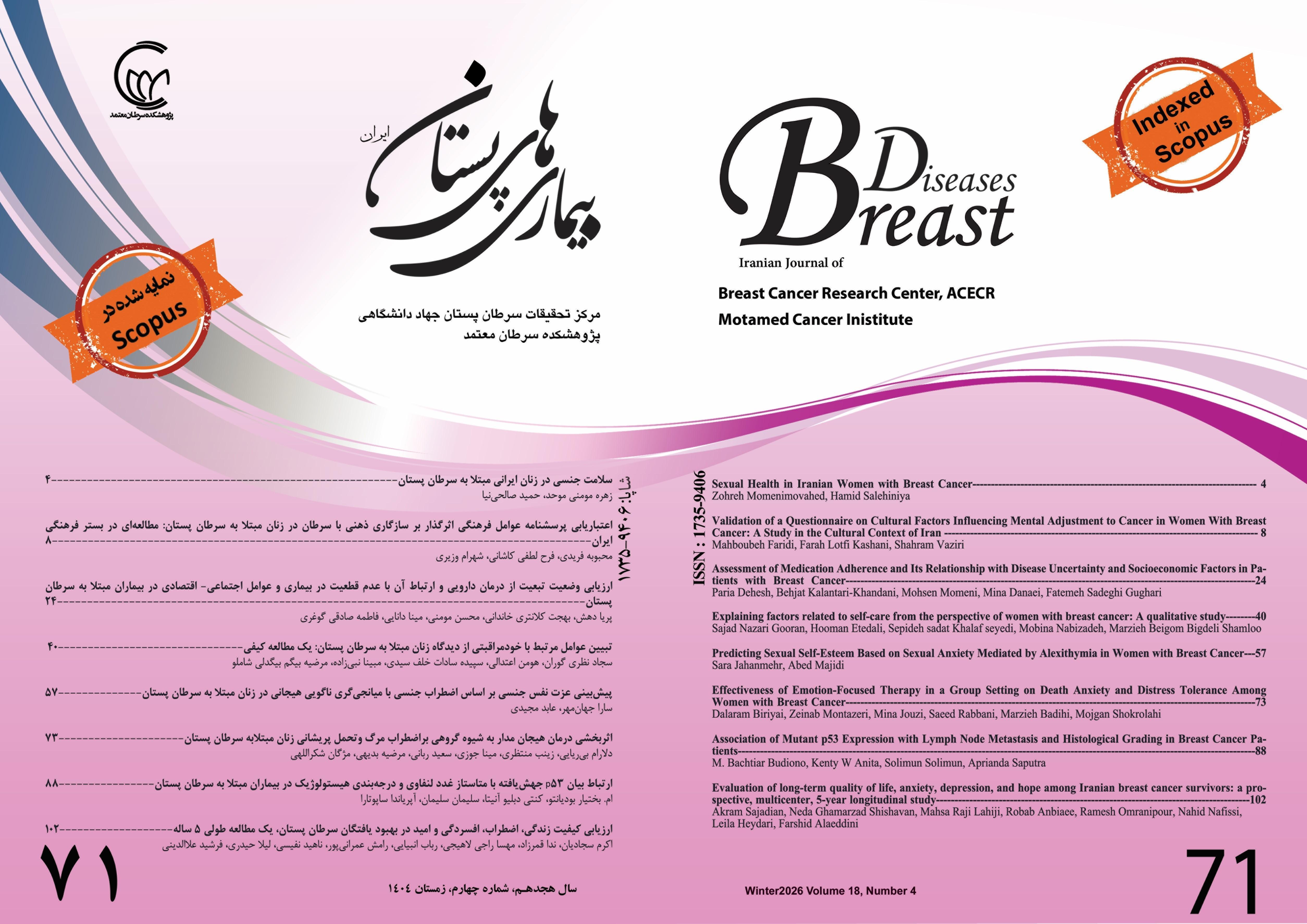 - پیشبینی عزت نفس جنسی بر اساس اضطراب جنسی با میانجیگری ناگویی هیجانی در زنان مبتلا به سرطان پستان