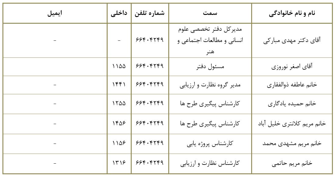 •  نظارت و ارزیابی عملکرد ساختارهای پژوهش و فناوری در حوزه علوم انسانی ،اجتماعی و هنر وفق ضوابط و مقررات